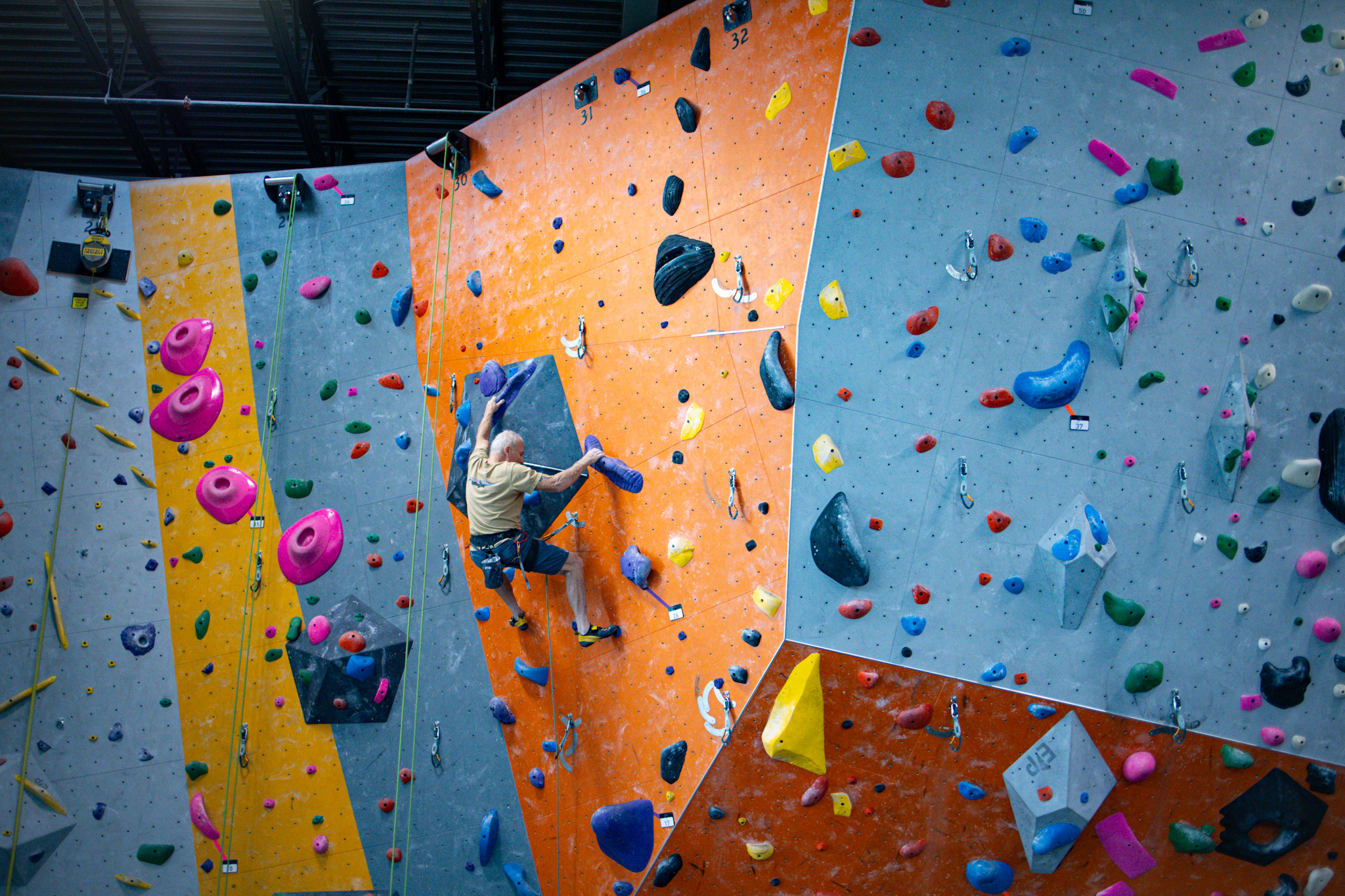 Our 24,000+ sq ft gym, features 20,000 sq ft of climbing terrain, with a full bouldering area, roped routes for every style and ability, a 16′ Kilter Board, and 8-10 autobelays.